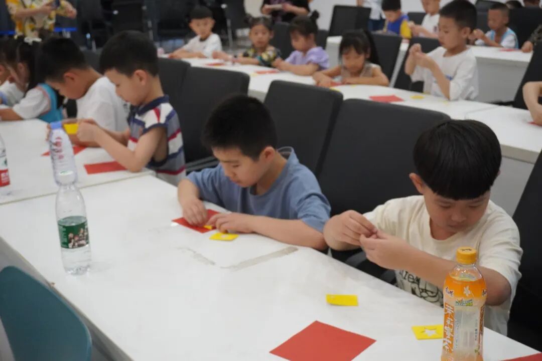 课后的手工实践环节将爱国情怀付诸实践。每位小朋友都领到了红卡纸和五角星材料,在展教老师的指导下,制作出一面面小小的卡片国旗。这一过程不仅锻炼了孩子们的动手能力,更让他们体会到了国旗的象征意义,增强了民族自豪感和责任感。