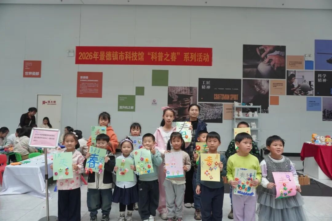 4月5日,景德镇市科技馆春日主题黏土手工活动圆满结束。活动现场,大家先在卡纸上书写 “春” 字,感受汉字之美,再用多彩超轻黏土揉、捏、贴,创作花朵与枝叶,围绕春字精心装饰。