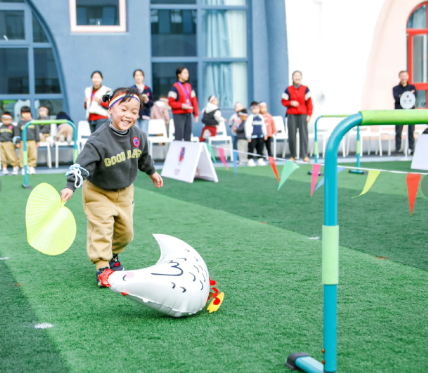 其他小朋友分组进行比赛,看哪一组能最快将所有小动物气球赶到指定区域。