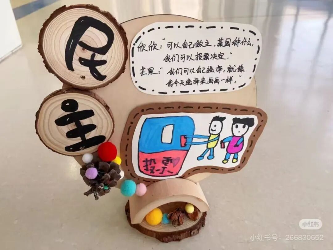 活动将带领小朋友使用木片、卡纸、彩球、干花等丰富材料,通过绘画、拼贴等趣味形式,把“民主”“文明”“和谐”等抽象理念变成具象摆件。孩子们在动手实践中锻炼创造力与动手能力,化身文明小使者,理解“我的一票我做主”的深刻内涵。
